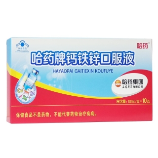 “商品名称”:哈药牌钙铁锌口服液